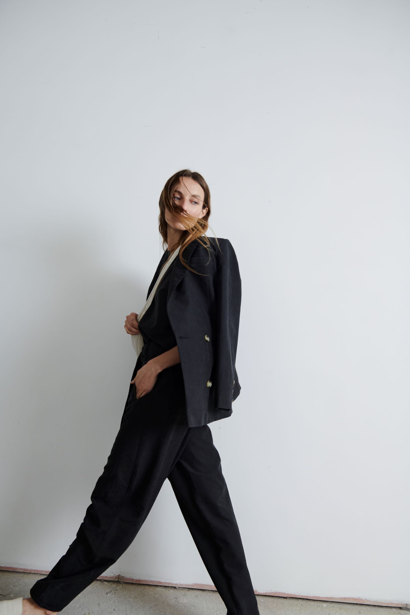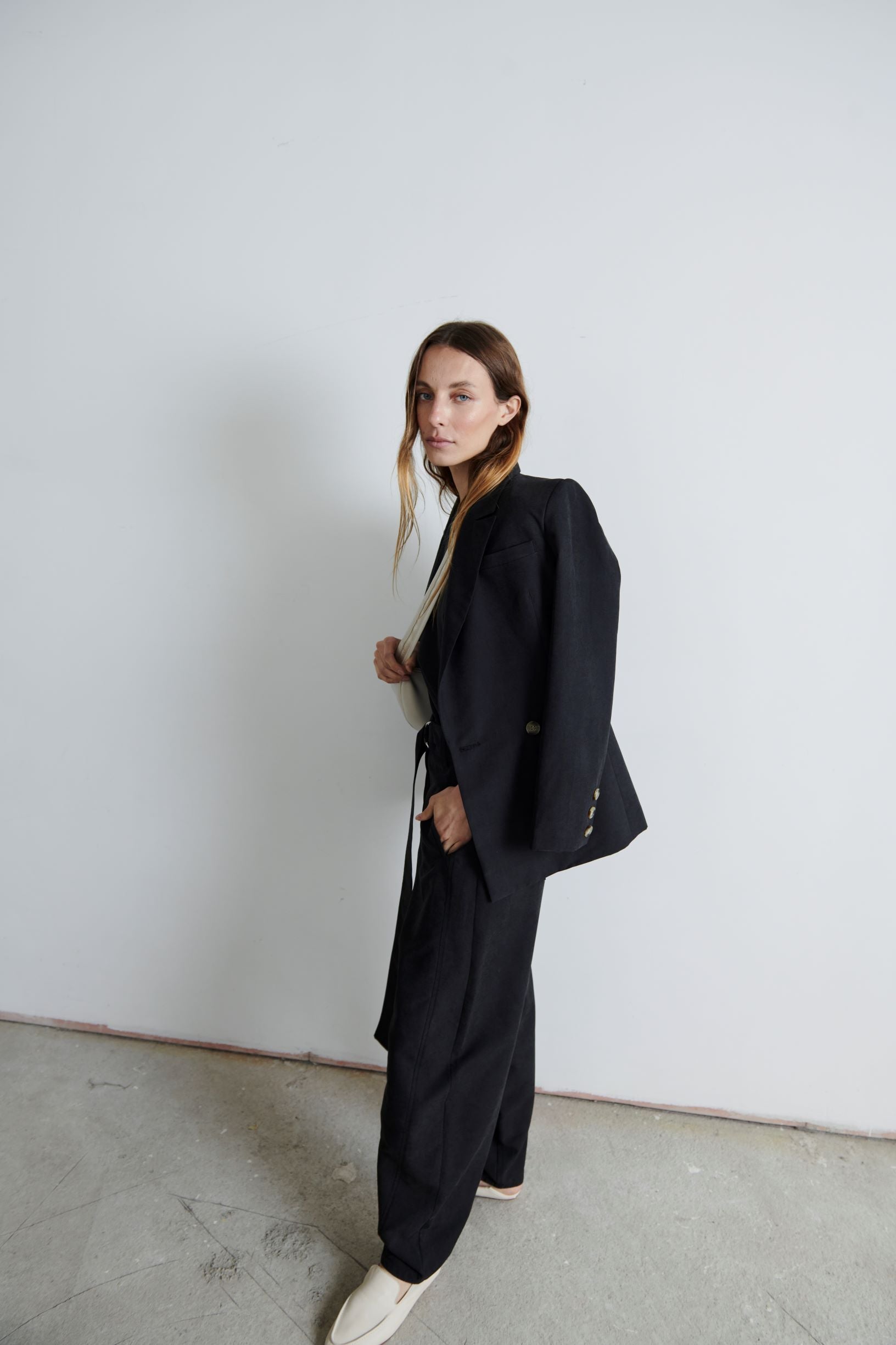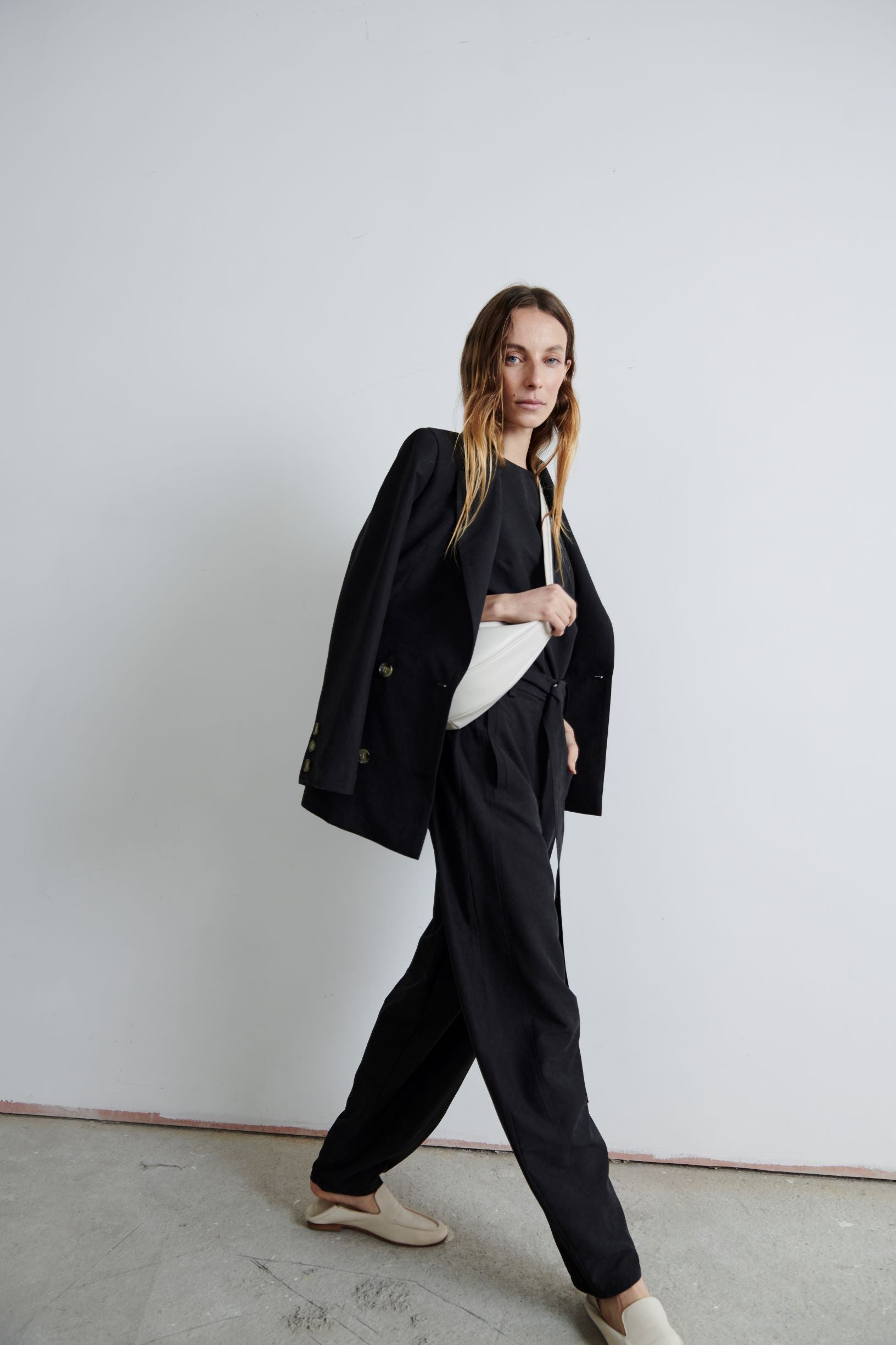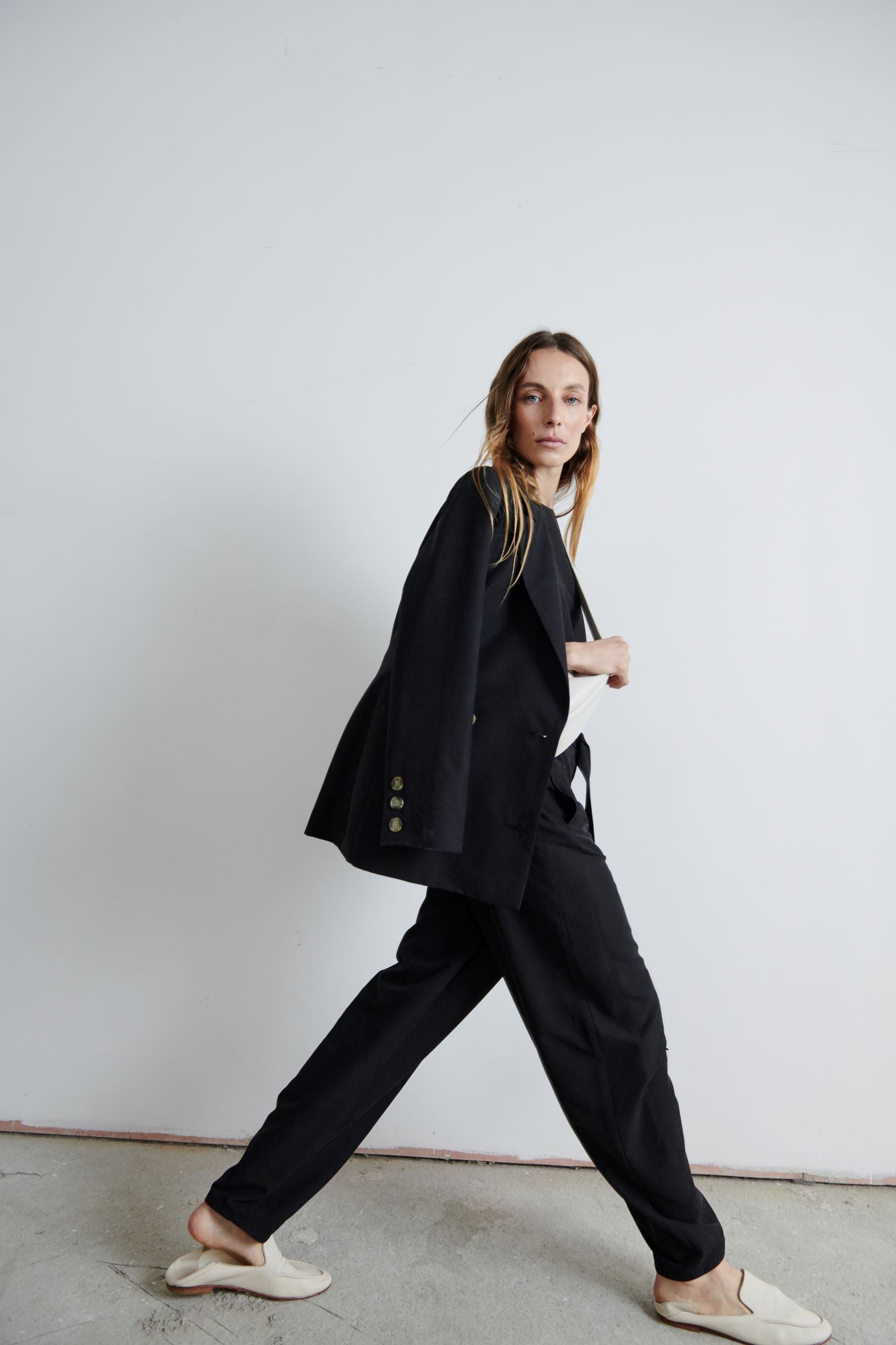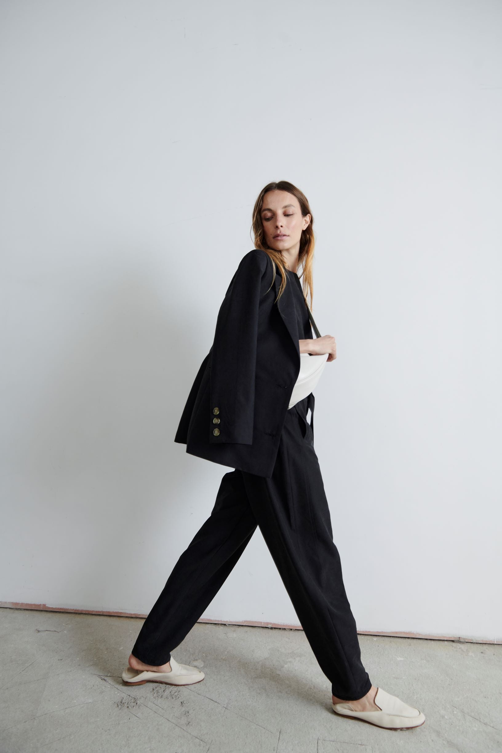 Pantalón Río sigue siendo un hit. Sutilmente abombachado y cintura alta, con un tiro largo que lo hace full cómodo. Su tela es fluida. Perfecto para un look relajado con zapatillas o más pulido con mocasines.
